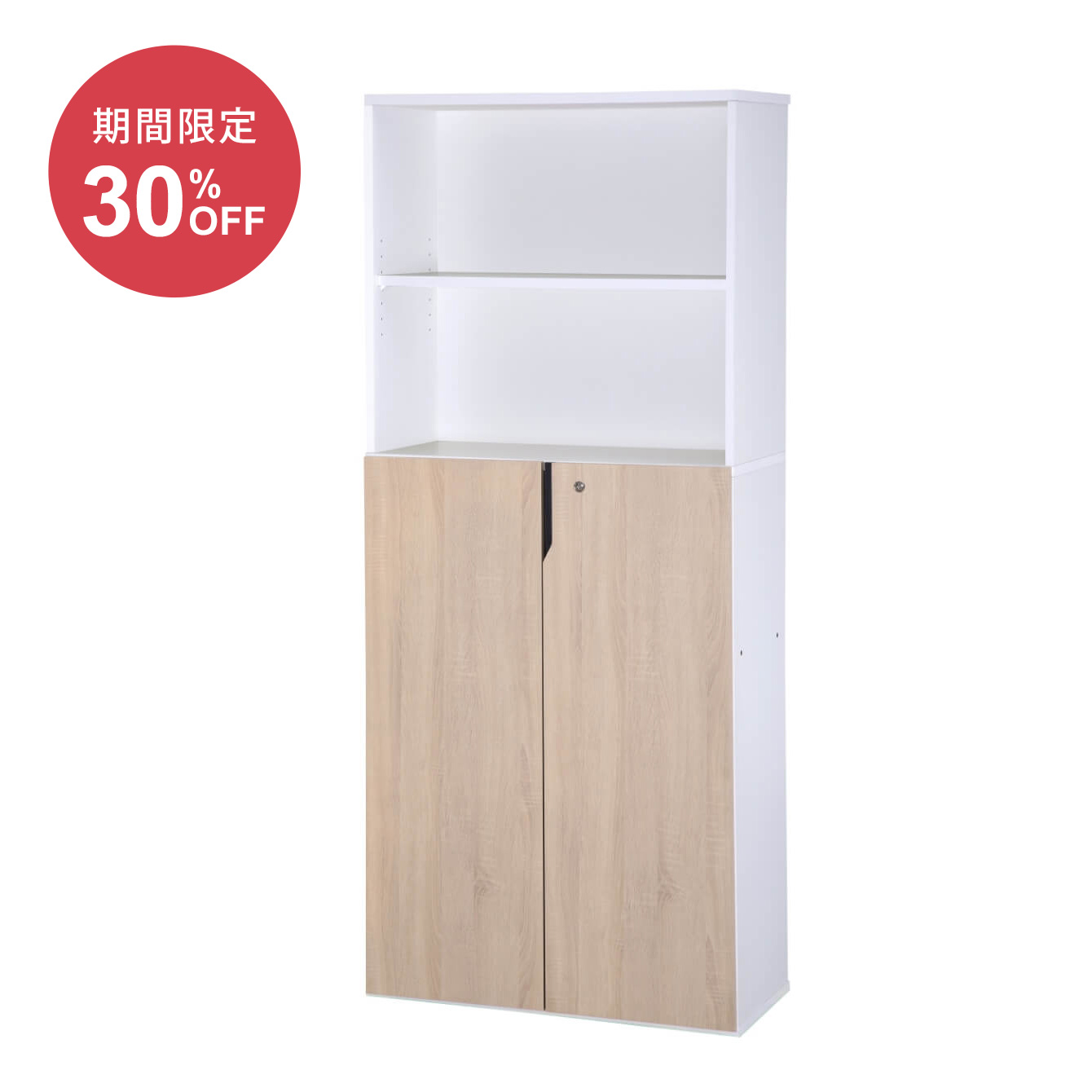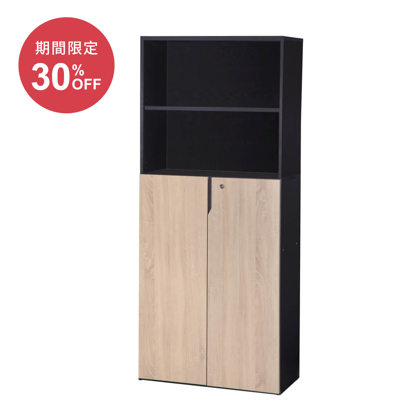 オープン型木製書庫に後付け可能な両開き扉